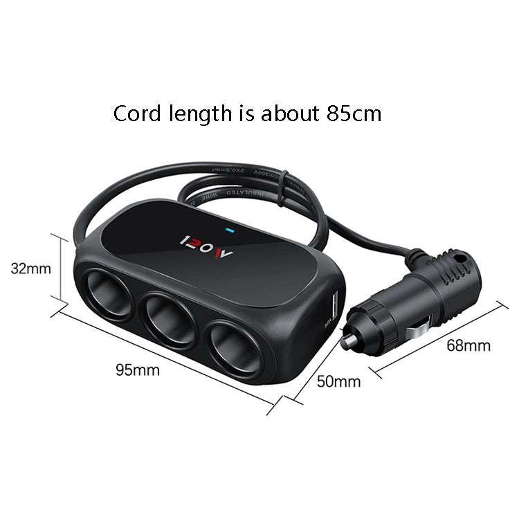 Car Charger Cigarette Lighter 1 In 3 Mobile Phone USB Car Charger(Black)