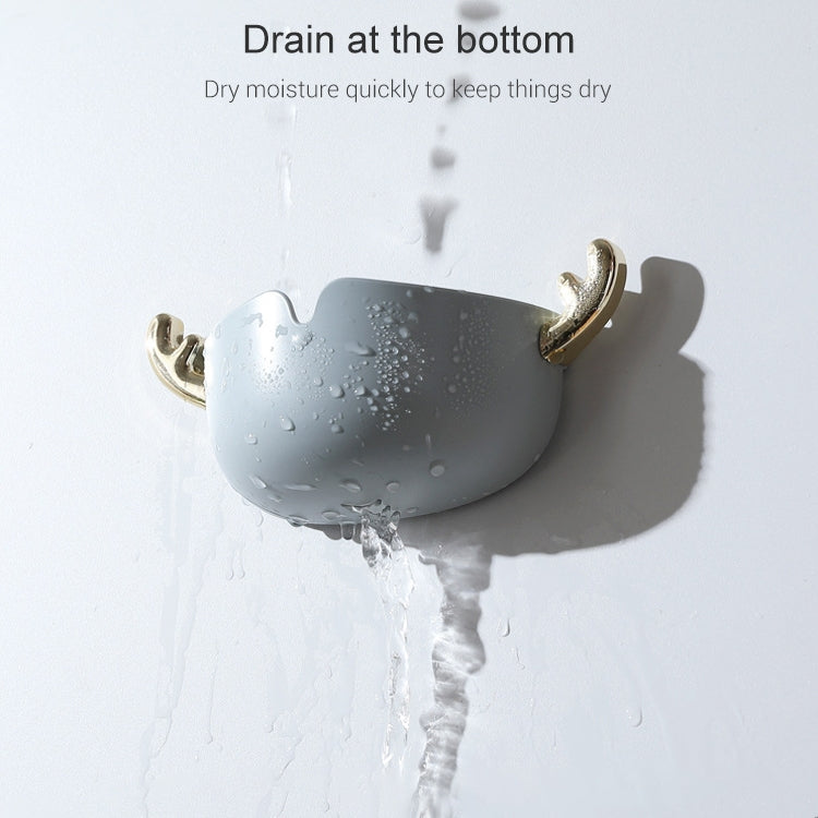 Cartoon Animal Cute Deer Soap Holder Seamless Wall-Mounted Bathroom Storage Box( Gray)