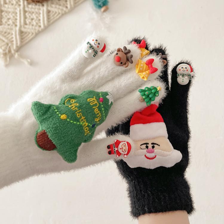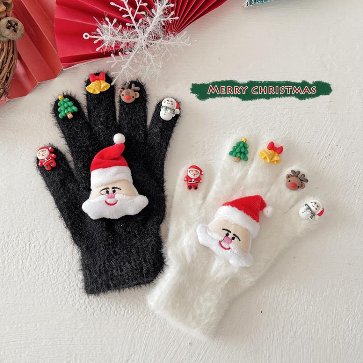 Christmas Gloves Doll Plush Warm Outdoor Riding Gloves, Size: 3-8 Years Children Model(White)