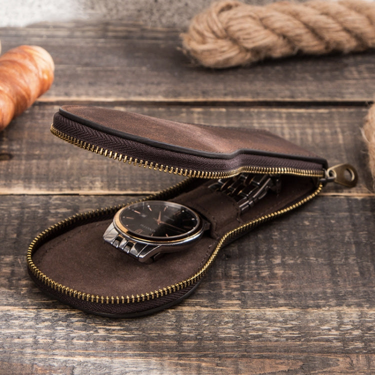 Contacts Family CF1112 Single Watch Position Retro Crazy Horse Leather Watch Storage Box Watch Zipper Case(Coffee)