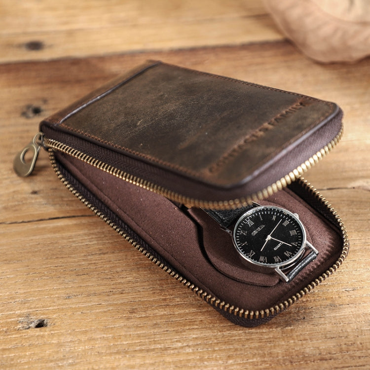 Contacts Family CF1121 Retro Crazy Horse Leather Watch Storage Box Single Watch Seat Portable Watch Zipper Bag(Coffee)