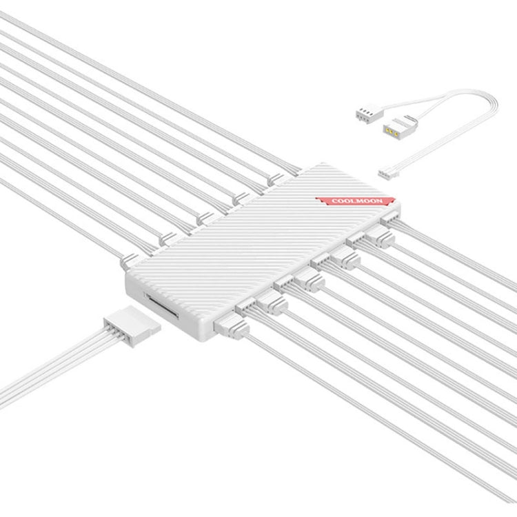 COOLMOON AM10 ARGB+PWM Dual 10 Ports Temperature Control Splitter Case Fan 5V 3Pin HUB(White)