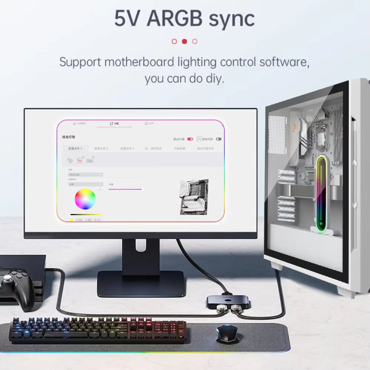 4. 5V ARGB synchronization, colorful synchronization, support for a variety of motherboard lighting control software, you can DIY