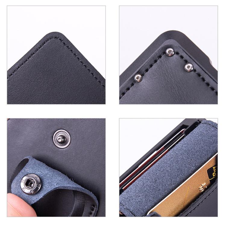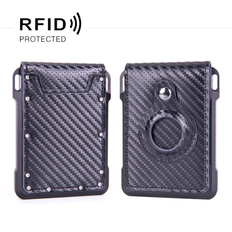 Cowhide Metal Wallet Credit Card Bag For AirTag Slot RFID Anti Theft Badge Card Holder(Carbon Fiber Black)