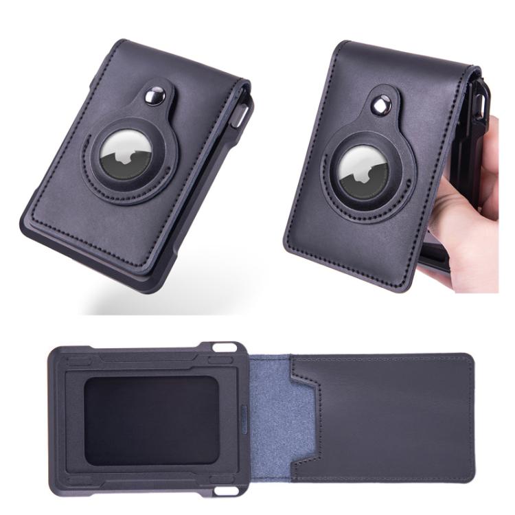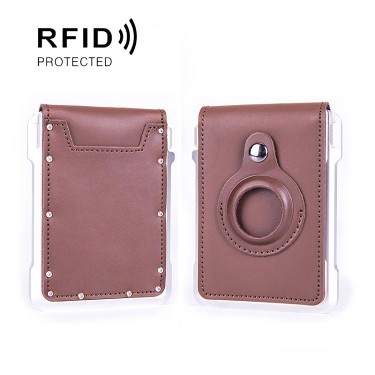 Cowhide Metal Wallet Credit Card Bag For AirTag Slot RFID Anti Theft Badge Card Holder(Coffee)