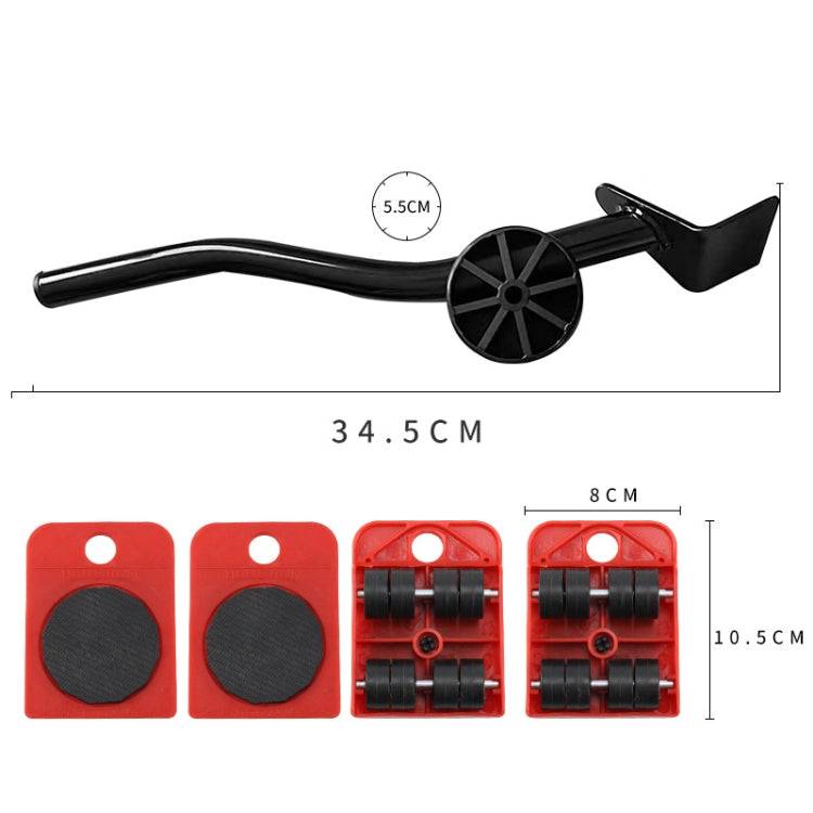 CY-0102 5 in 1 Household Moving Bed Heavy Object Moving Pulley Furniture Shifter Multifunctional Carrier, Model: Red Black Pry Bar (150KG)