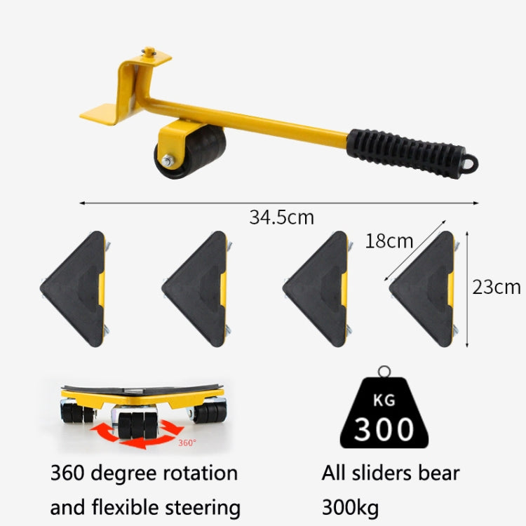 CY-0102 5 in 1 Household Moving Bed Heavy Object Moving Pulley Furniture Shifter Multifunctional Carrier, Model: Yellow (300KG)