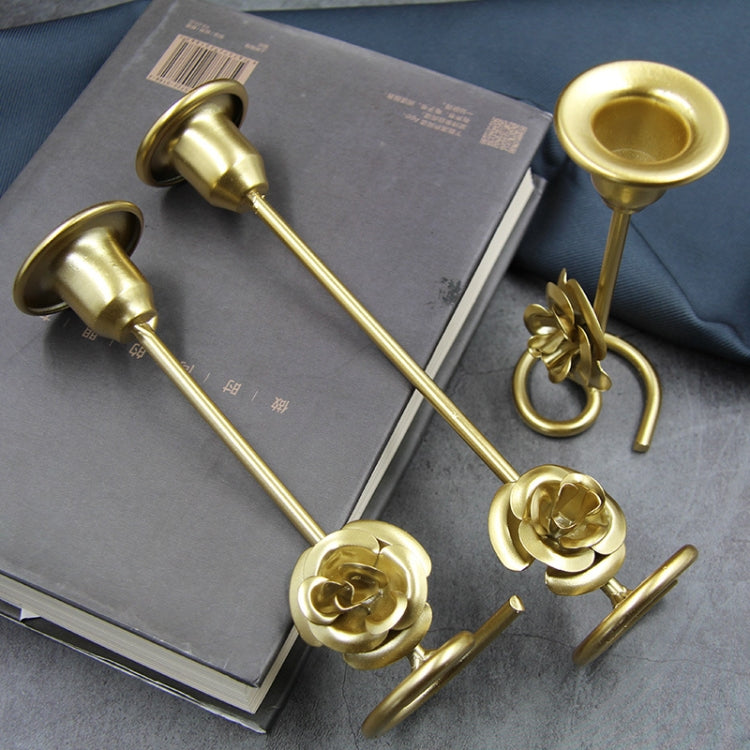 DH2304-01 Rose Carved Metal Candle Holder Bar Decoration Candlelight Dinner Candlesticks, Size: Short Black