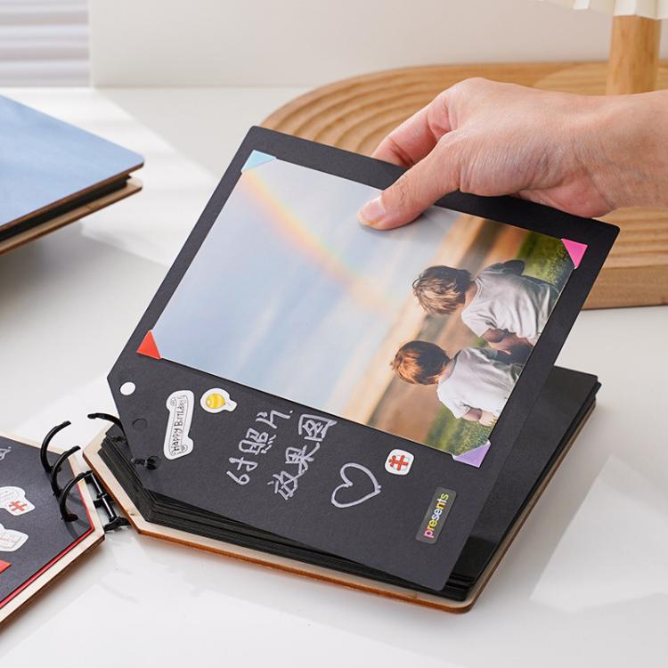 DIY Wooden Square Memorial Album Kids Growth Photo Album Cartoon Photo Book(Best Friends)