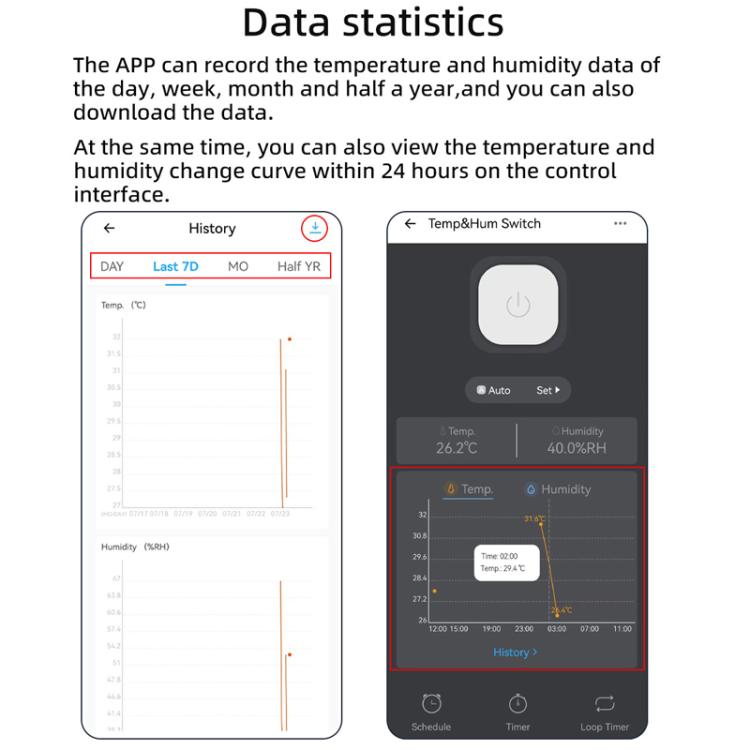 1. APP remote control, install the eWelink APP, control the switch through the application, and view the real-time status of the switch and the temperature/humidity values at any time