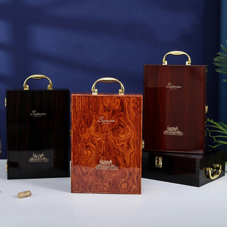 Double Piano Finish Red Wine Box Wooden Packing Case Wine Gift Box With Tools(Ebony)