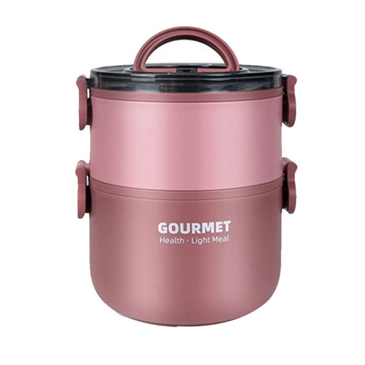 Dual-Layer 1600ml 304 Stainless Steel Insulated Bowl Student Plastic Shell Lunch Box(Red)