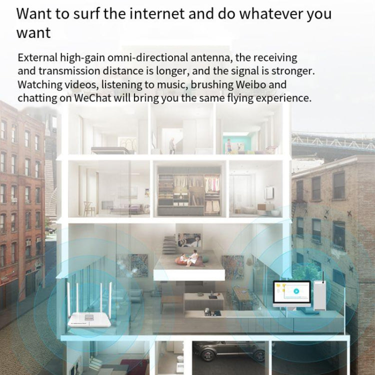 1. High-speed Wireless Connection: Supports fast wireless speeds up to 286Mbps, ensuring seamless and efficient Internet connection for users, especially for those who need to stream high-quality videos or large files.