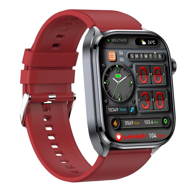 ET572 2.0 inch Color Screen Smart Watch Silicone Strap, Support Supports Health Monitoring / ECG(Red)