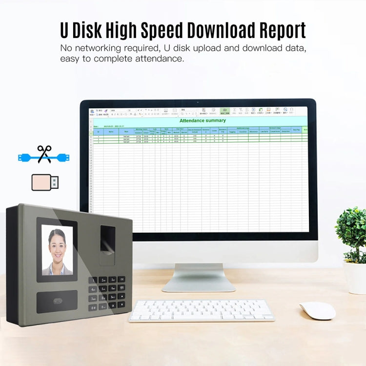Intelligently generate attendance records and export Excel tables using a USB flash drive, making them clear at a glance