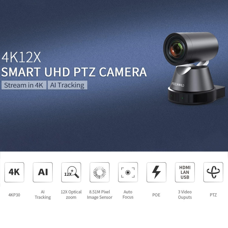 FEELWORLD 4K12X 4K PTZ Camera 12X Optical Zoom AI Tracking HDMI USB IP Remote Control(UK Plug)