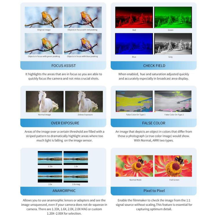 3. Focus Assist(Red, Green, Blue three focus colors optional)