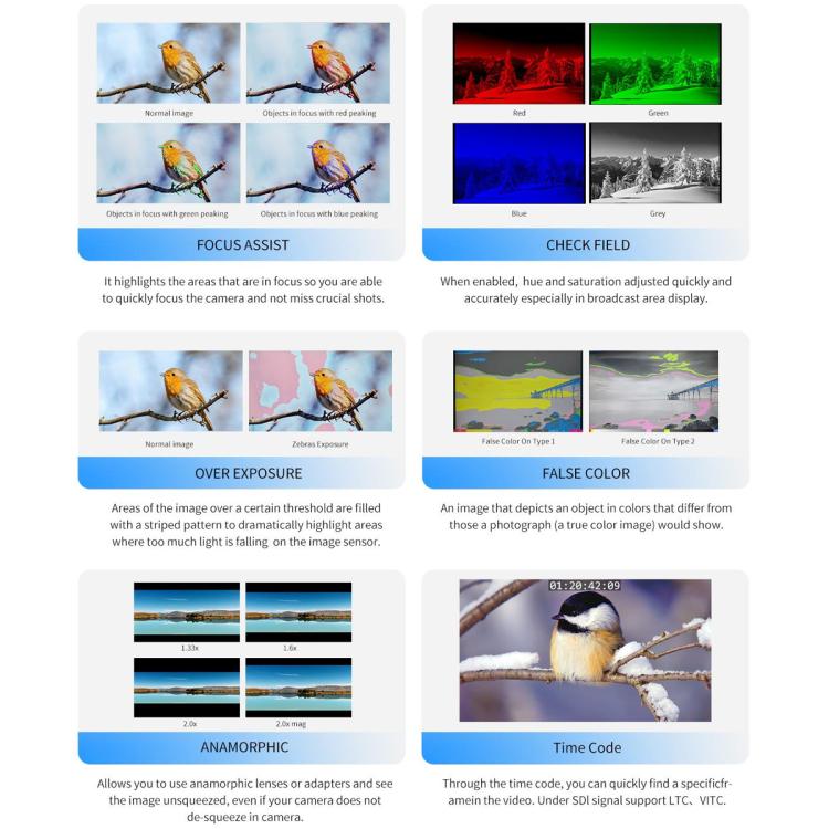 8. Focus Assist(Red, Green, Blue three focus colors optional; 1~10 focus level adjustable)