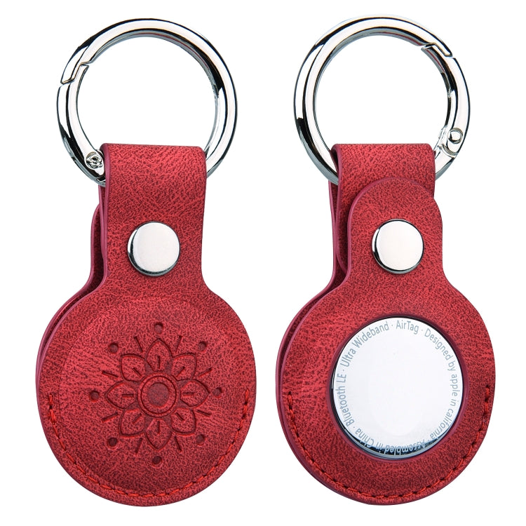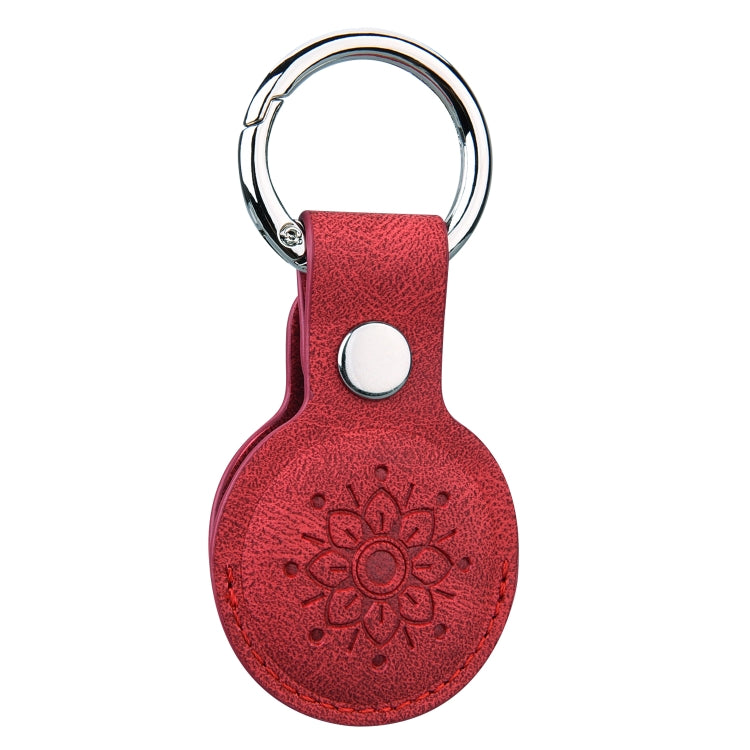 Floral Embossing Leather Protective Case with Key Ring for AirTag 2nd Gen / AirTag 1st Gen(Red)