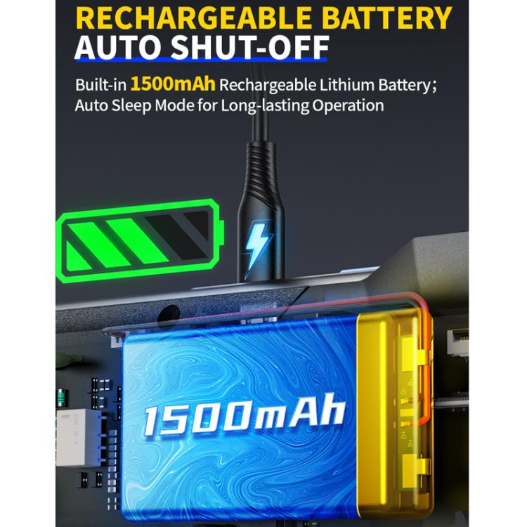 13. Built-in 1500mAh high-capacity rechargeable lithium battery with automatic sleep mode for long battery life.