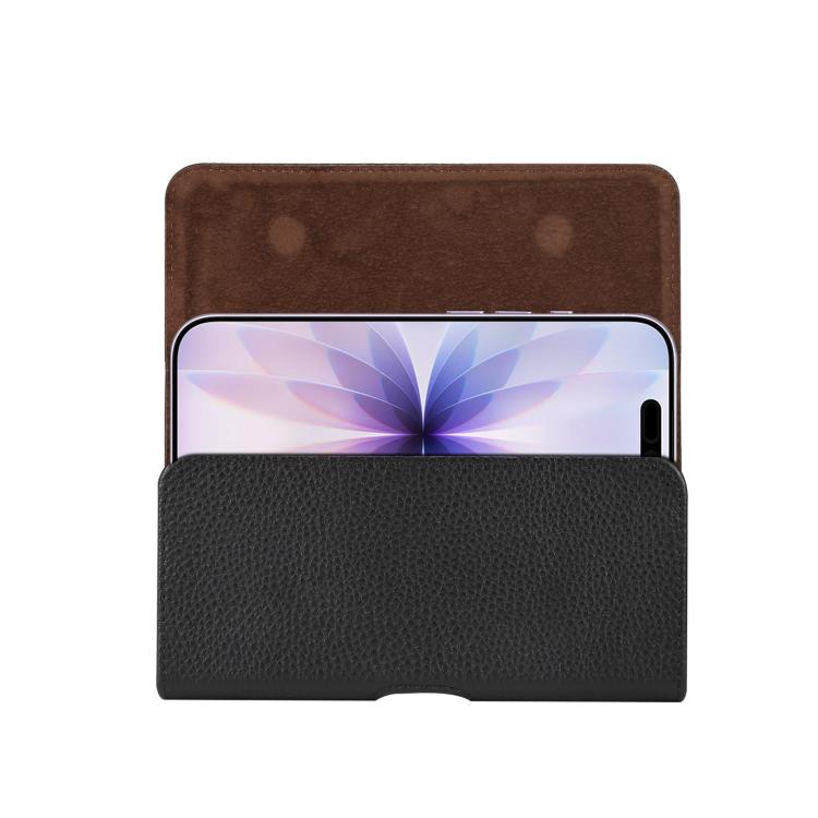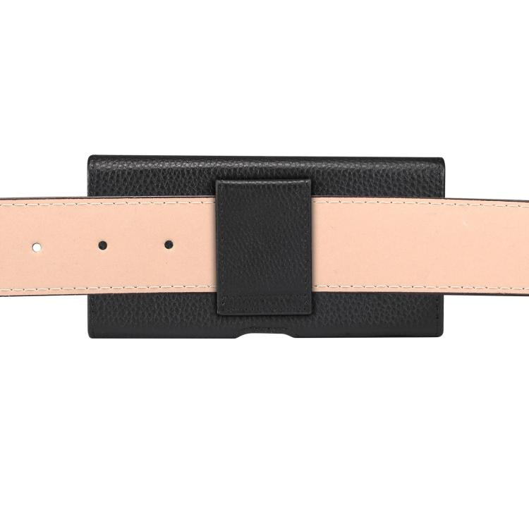 For 6.1 inch Genuine Leather Universal Waist Hanging Bag Leather Phone Case(Black)