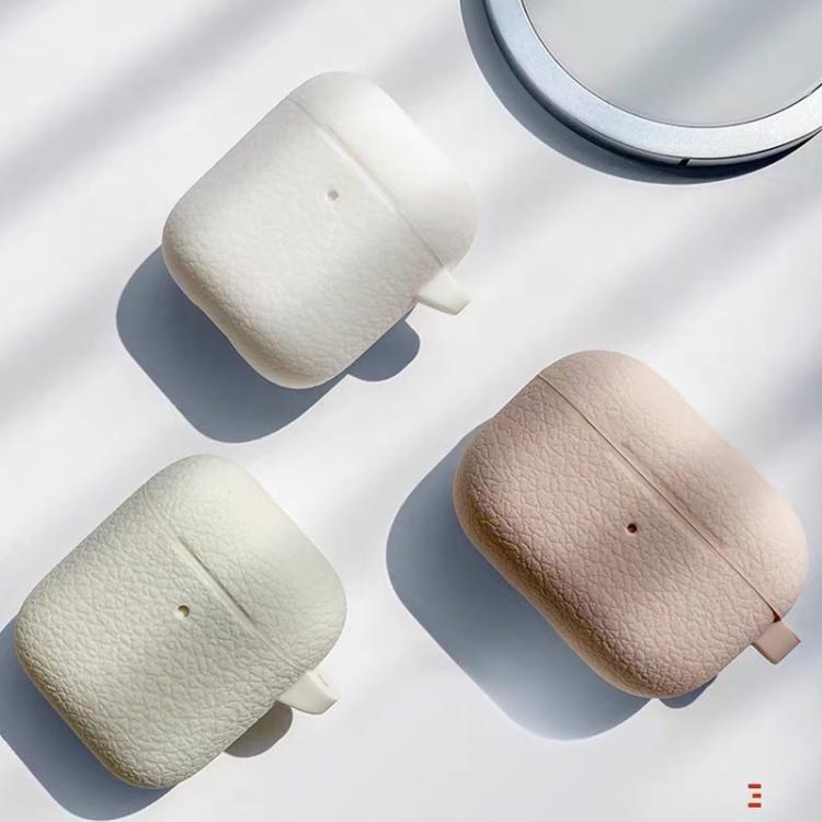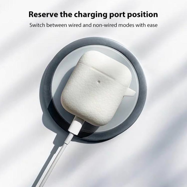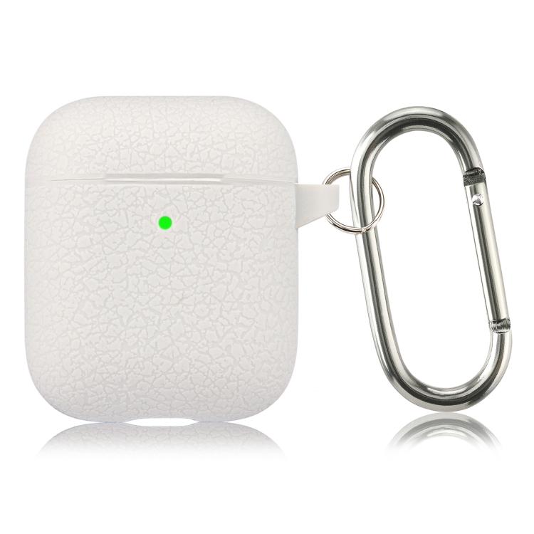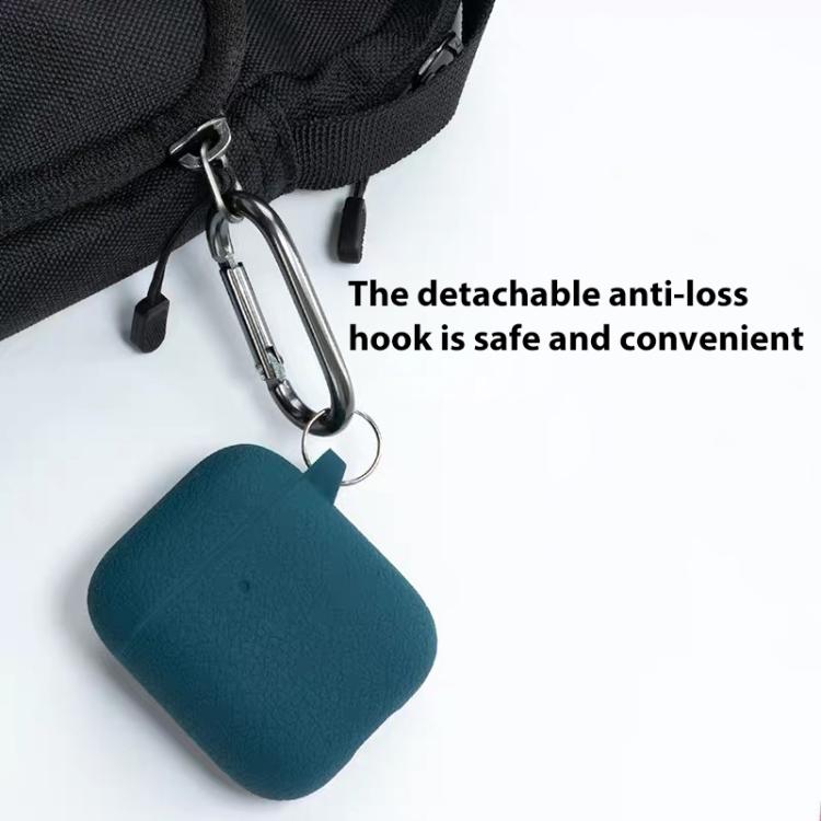 For AirPods 1 / 2 Simple Solid Color Litchi Texture Silicone Earphone Protective Case with Hook(Rock)