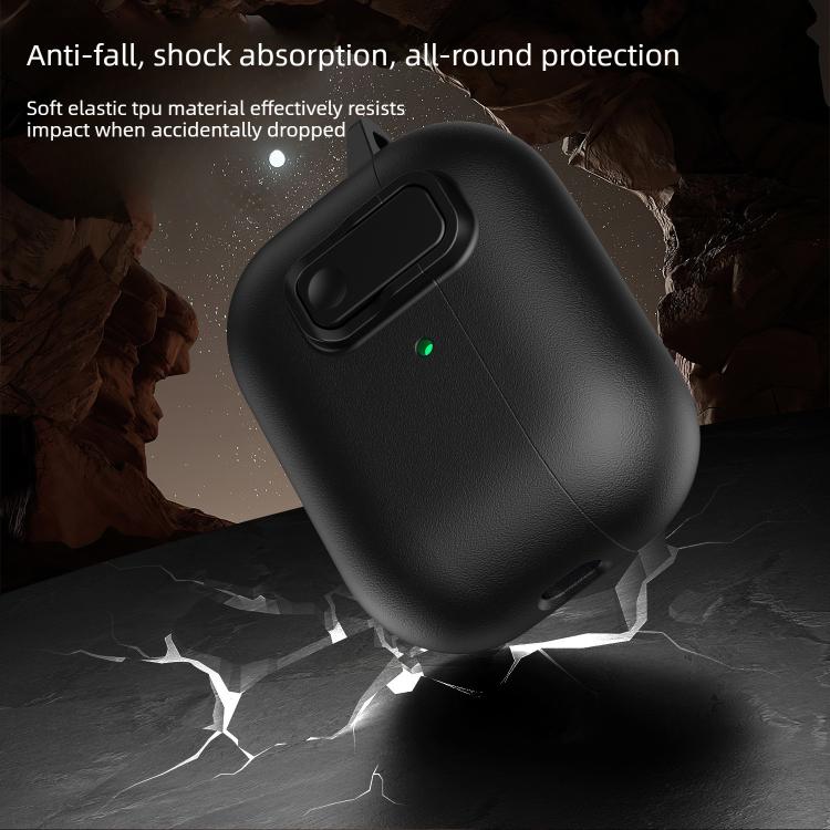 For AirPods Pro 3 Grained Leather Look TPU Earphone Cover with Ring Hook(Mountain Green)