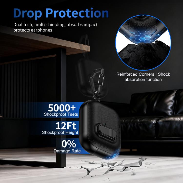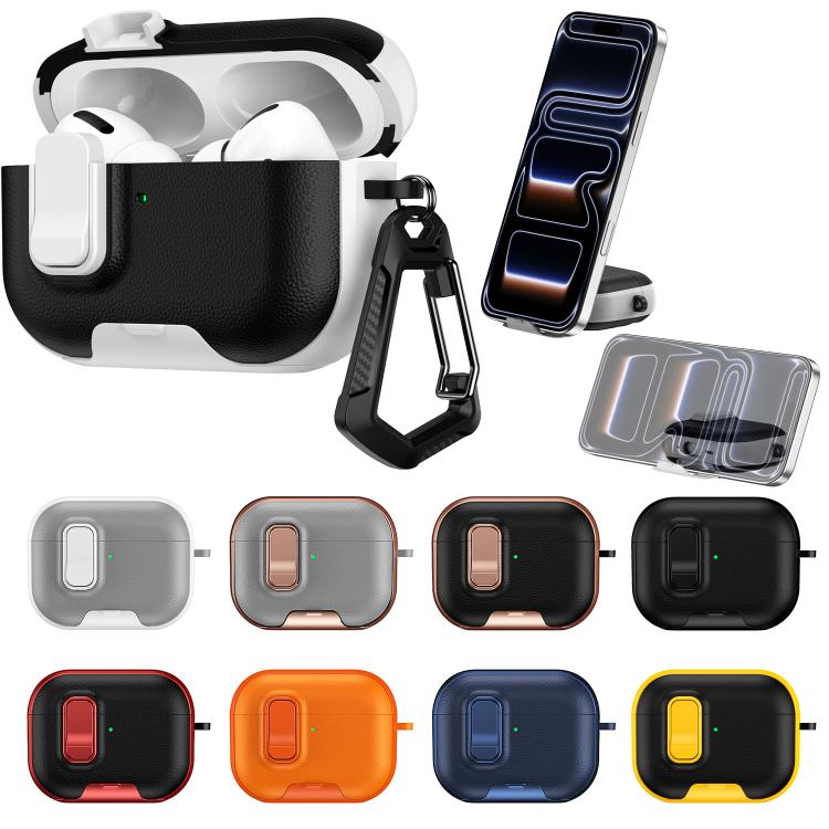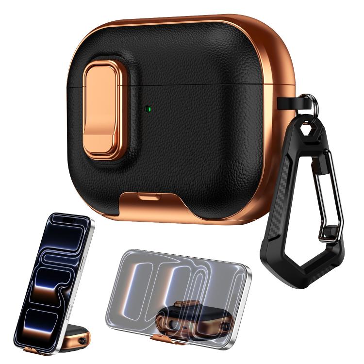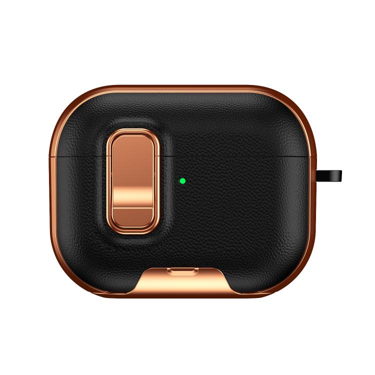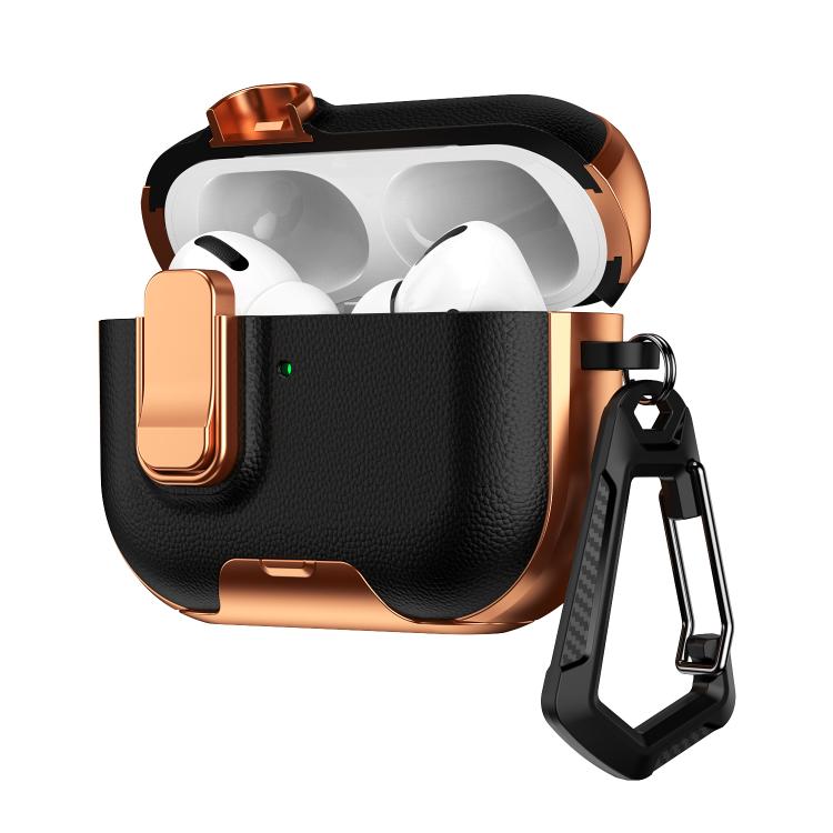 For AirPods Pro 3 Litchi Texture Earphone Case with Holder & Security Lock(Black Rose Gold)