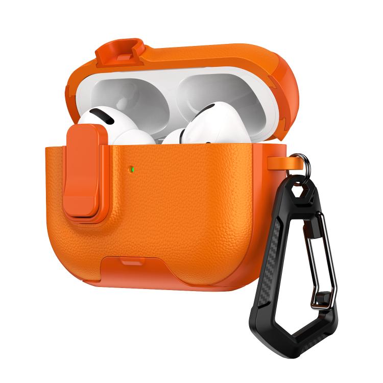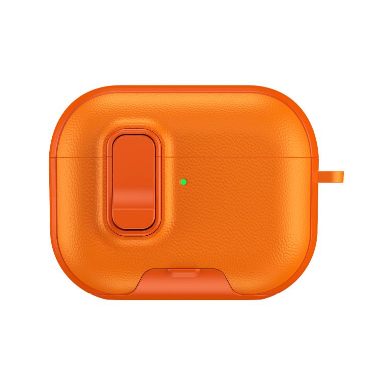 For AirPods Pro 3 Litchi Texture Earphone Case with Holder & Security Lock(Orange)