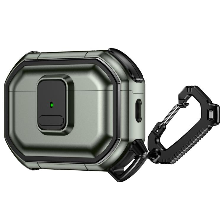 For AirPods Pro 3 Snap-Lock Shockproof PC Headphone Cover with Carabiner(Army Green)
