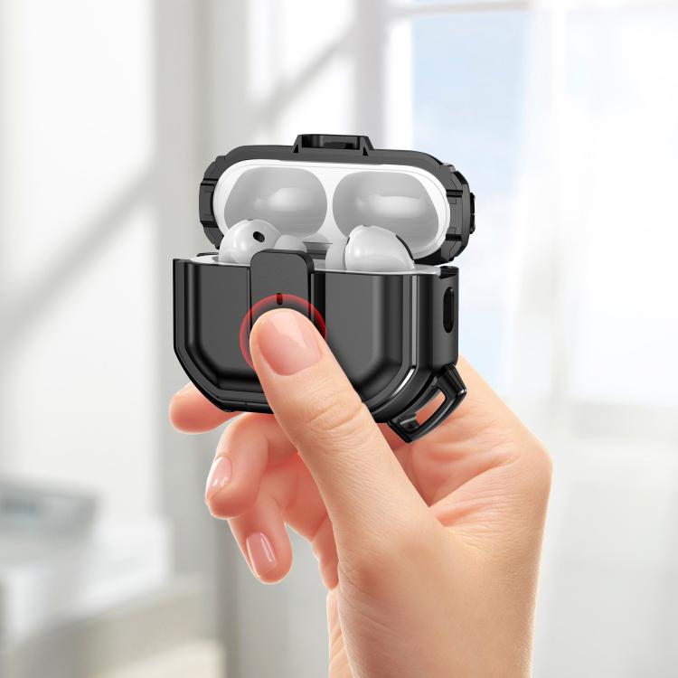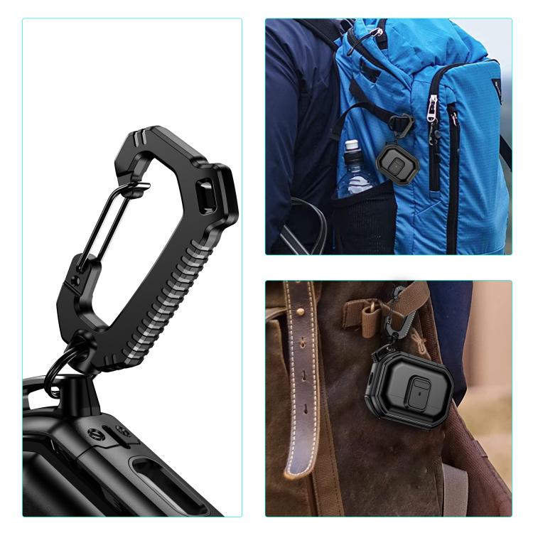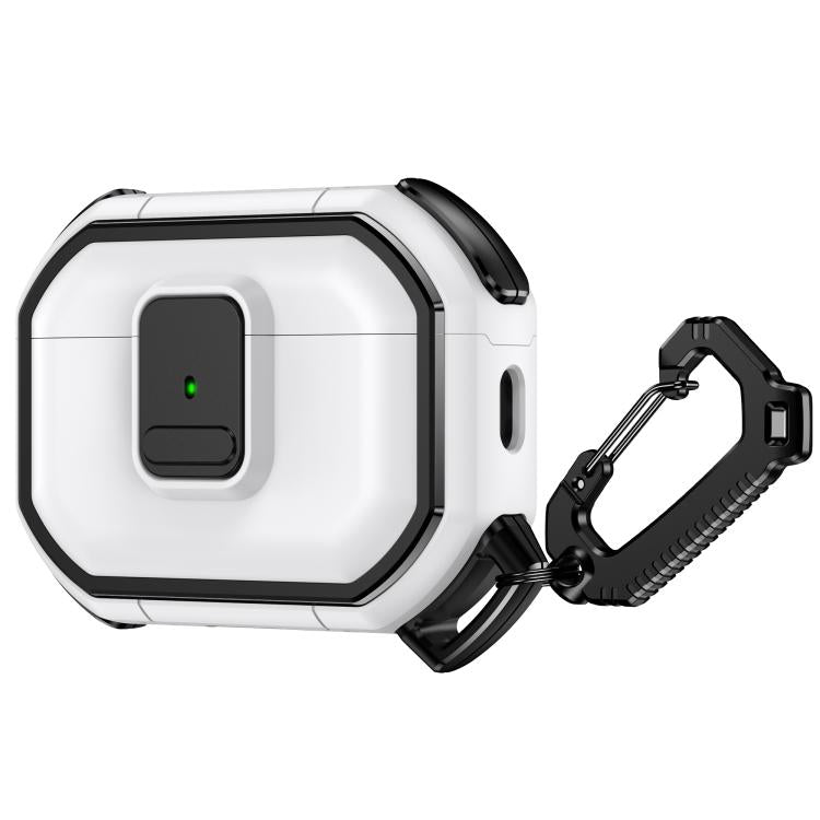 For AirPods Pro 3 Snap-Lock Shockproof PC Headphone Cover with Carabiner(White)