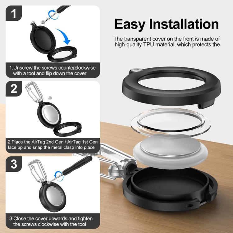 For AirTag 2nd Gen / 1st Gen XDcase Fully Enclosed Waterproof Protective Case with Hook(White)