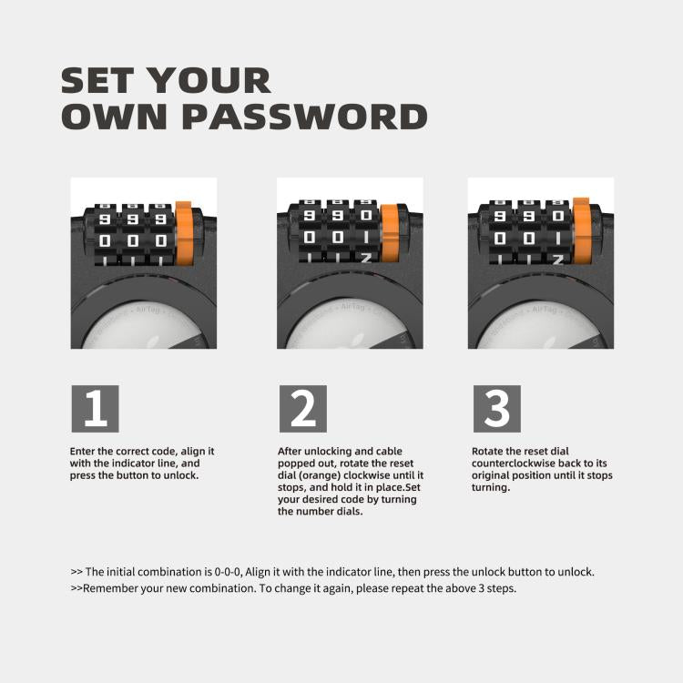 1. 2-in-1 AirTag Lock Holder with Security Cable & Combination Lock: This innovative product combines AirTag tracking with a sturdy combination lock, offering dual protection for your belongings. Crafted with premium materials, it securely attaches to luggage, backpacks, bikes, and more while keeping your AirTag hidden and protected. (Not included AirTag)