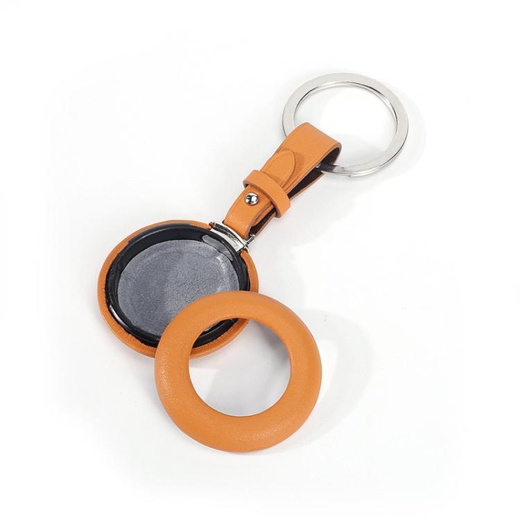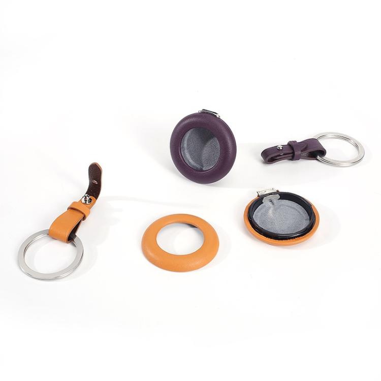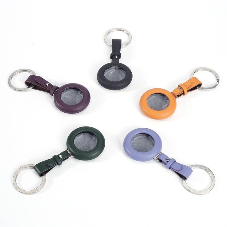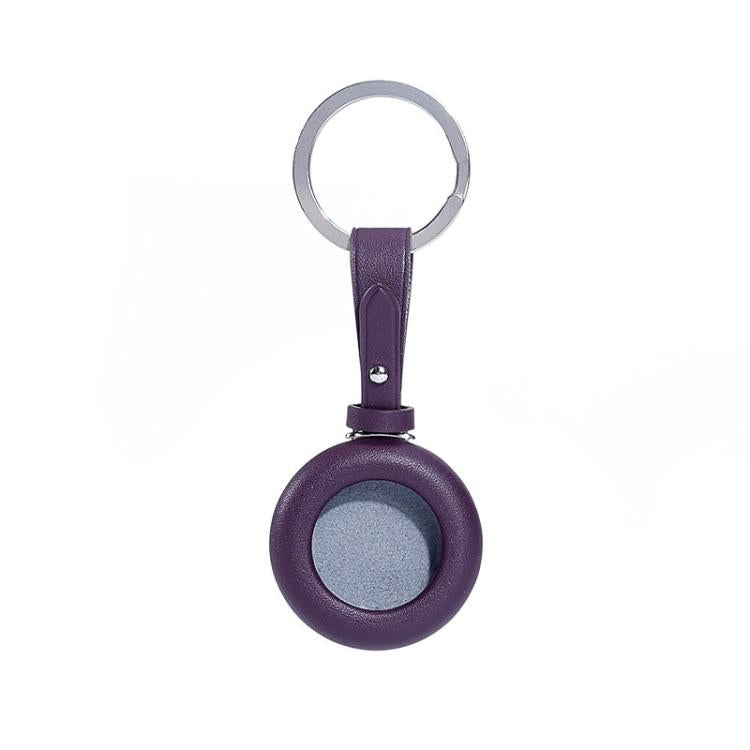 For Airtag Genuine Leather Shockproof Anti-scratch Protective Case Cover with Keychain(Dark Purple)