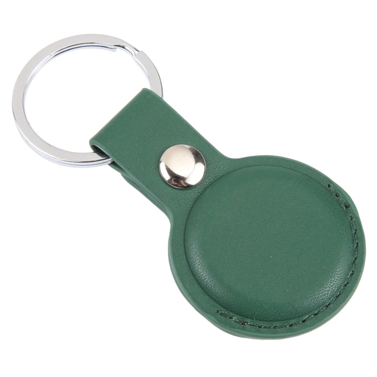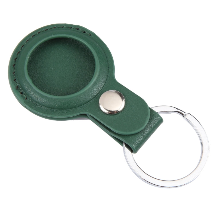 For AirTag Shockproof Anti-scratch Leather Protective Case Cover with Hang Loop Key Chain(Deep Green)