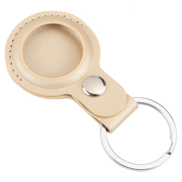For AirTag Shockproof Anti-scratch Leather Protective Case Cover with Hang Loop Key Chain(Gold)