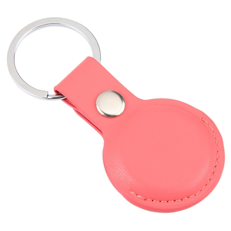 For AirTag Shockproof Anti-scratch Leather Protective Case Cover with Hang Loop Key Chain(Rose Red)