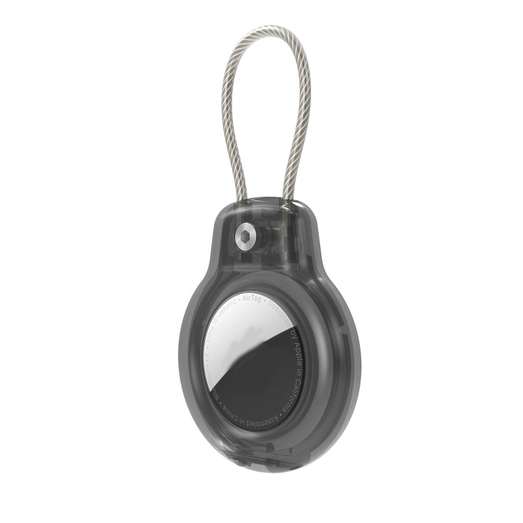 For AirTag Tracker Protective Cover With Metal Lanyard and Lock Three-proof Case(Transparent Black)