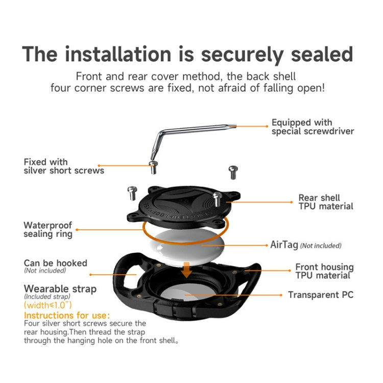 For Airtag Watch Band IP67 Grade Waterproof Case With Paste Bracelet(Red)