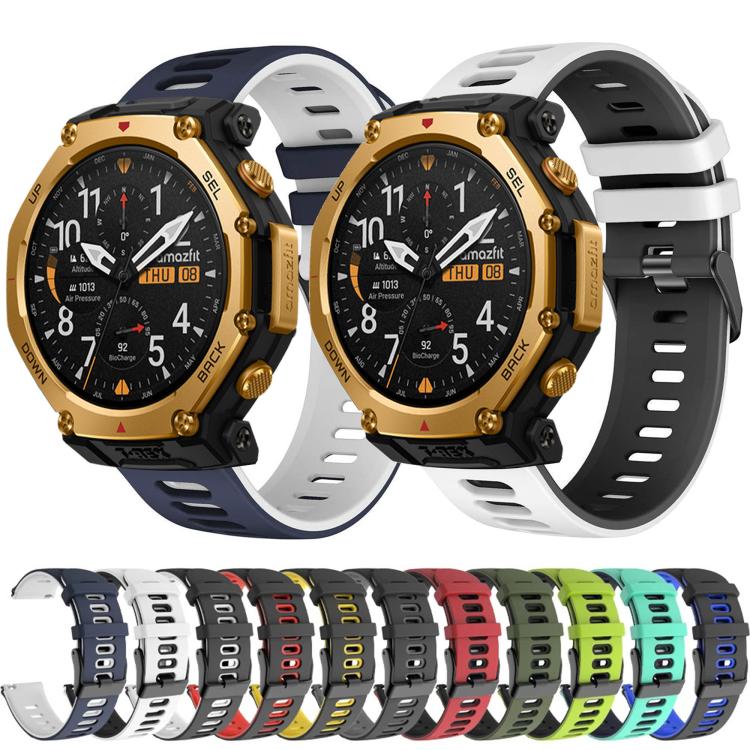 For Amazfit T-Rex 3 Pro 48mm Black Buckle Two Color Silicone Watch Band(Black Blue)