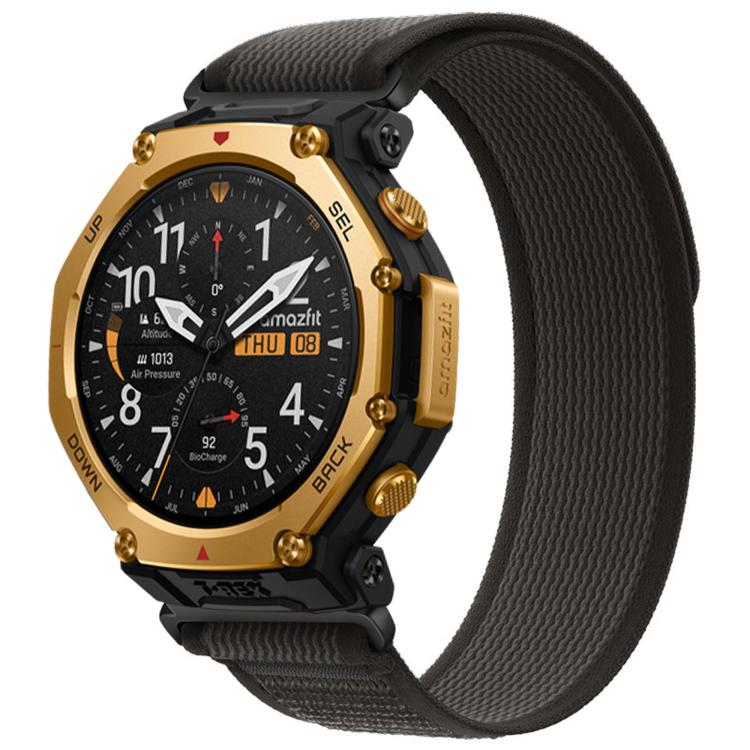 For Amazfit T-Rex 3 Pro 48mm Wild Path Loop Nylon Hook and Loop Fastener Watch Band(Black Black)