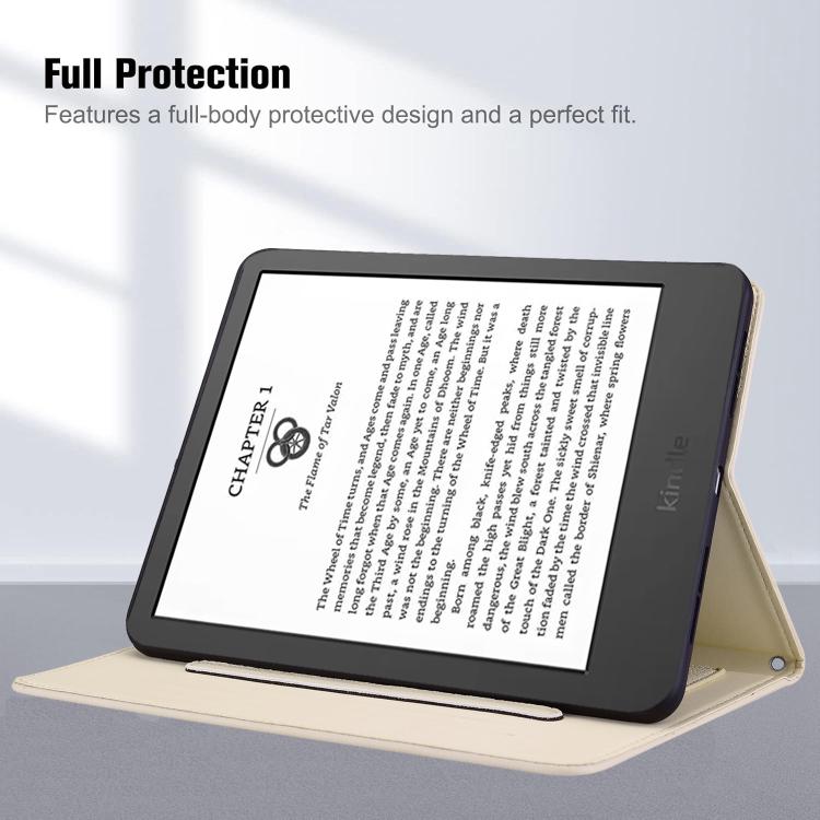 For Amazon Kindle Paperwhite 12th Gen 2024 Cat Skin-feel Litchi Leather Smart Tablet Case(Apricot White)