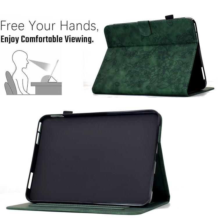 For Amazon Kindle Paperwhite 5 2021 Plum Blossom Embossed Smart Leather Tablet Case(Green)