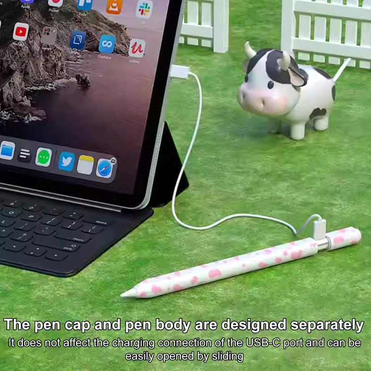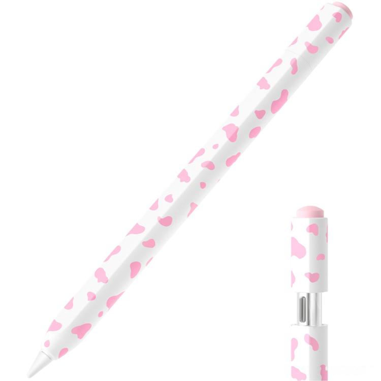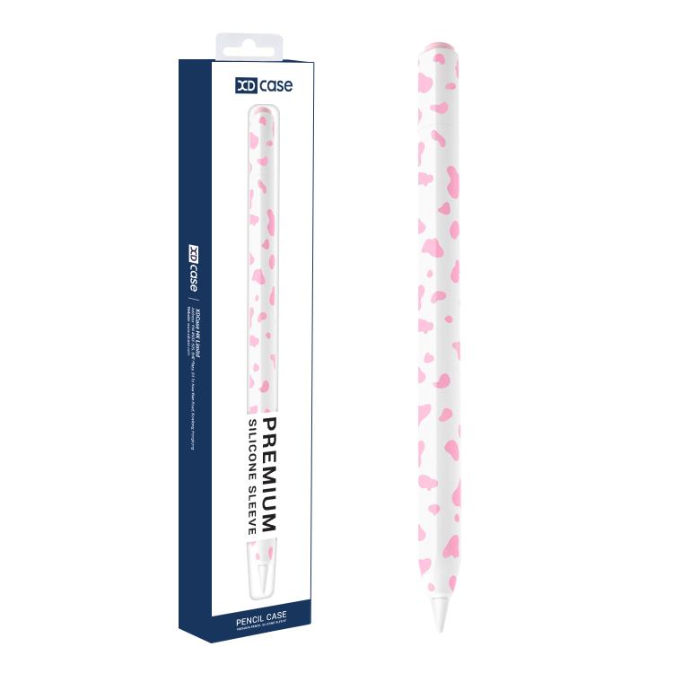 For Apple Pencil USB-C / 3 XDcase Cow Print Silicone Protective Stylus Pen Sleeve(Pink)