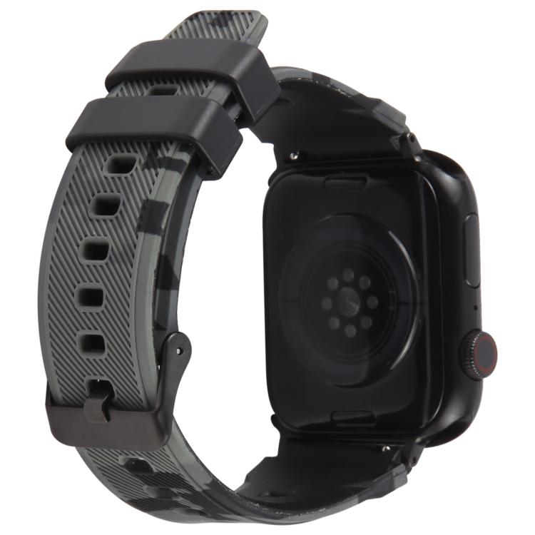 For Apple Watch 42 / 44 / 45 / 46 / 49mm xDfind Black Connector Camouflage Print Silicone Watch Band(Grey)