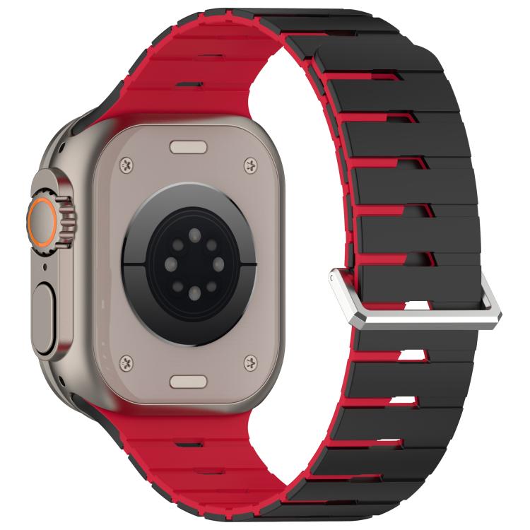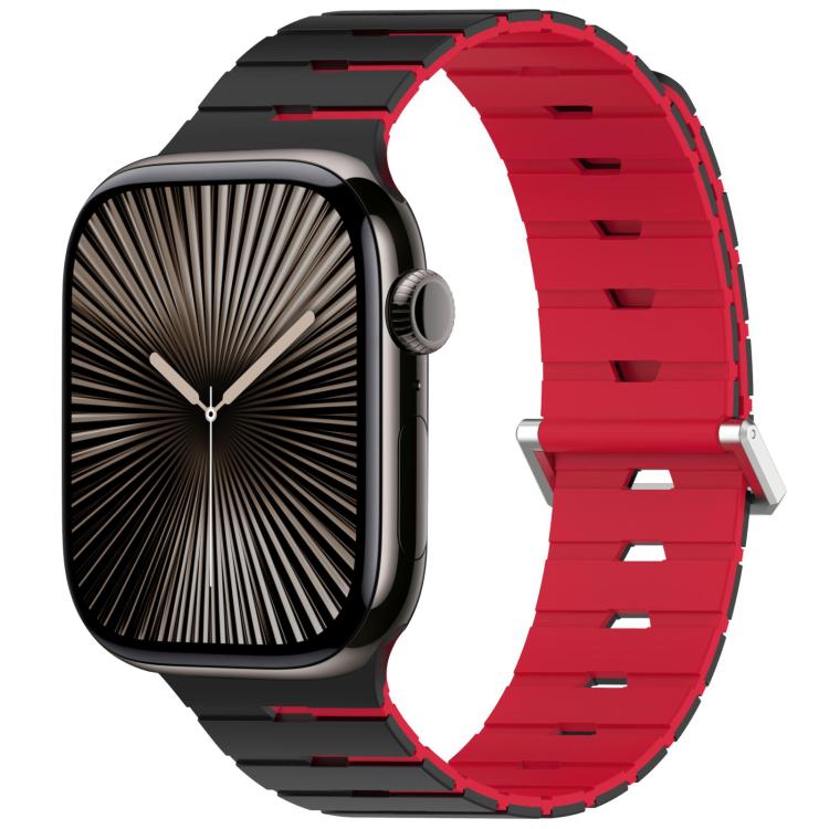 For Apple Watch 42mm / 41mm / 40mm / 38mm Melodica-Style Magnetic Dual-Color Silicone Watch Band(Black Red)