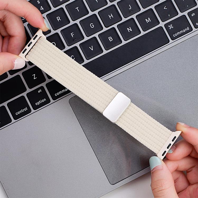 For Apple Watch 42mm / 41mm / 40mm / 38mm Single Color Magnetic Snap Four Strand Elastic Nylon Watch Band(Black)