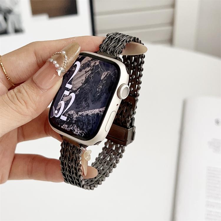 For Apple Watch 42mm / 41mm / 40mm / 38mm Slim Magnetic Snap Clasp Steel Mesh Metal Watch Band(Grey)