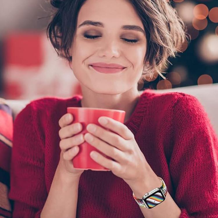 For Apple Watch 44mm / 45mm Ladder Buckle Loop Nylon Watch Band with TPU Case(Pink)
