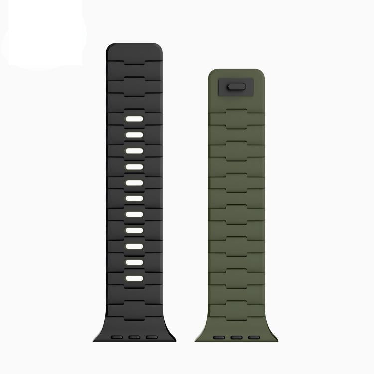 For Apple Watch 46mm / 49mm / 45mm / 44mm Horse-Embossed Single-Pin Magnetic Silicone Watch Band(Army Green Black)